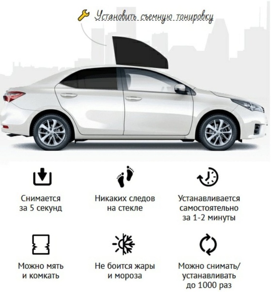 лучшая альтернатива любой съемной тонировке (например как: силиконовая, гибридная, на основе пэт) и каркасным шторкам (автошторки, сетки)